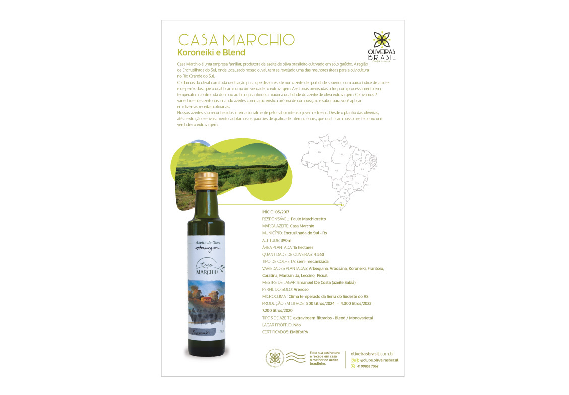 Quando receber seu azeite mensalmente, ele virá sempre acompanhado de um encarte que pode ser arquivado, contendo informações relevantes sobre o produtor e o azeite. Este encarte conterá também sugestão de receita e harmonização para seu azeite. Há um campo onde o assinante pode fazer anotações e avaliar o azeite. Além disso criamos um ambiente online, exclusivo para nossos assinantes, que é atualizado periódicamente com informações relevantes da cadeia produtiva do azeite de oliva, sobretudo do azeite brasileiro.